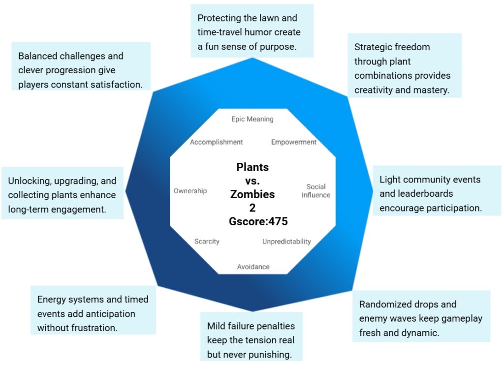 Plants vs. Zombies 2 remains a masterclass in accessible yet deep strategy design.