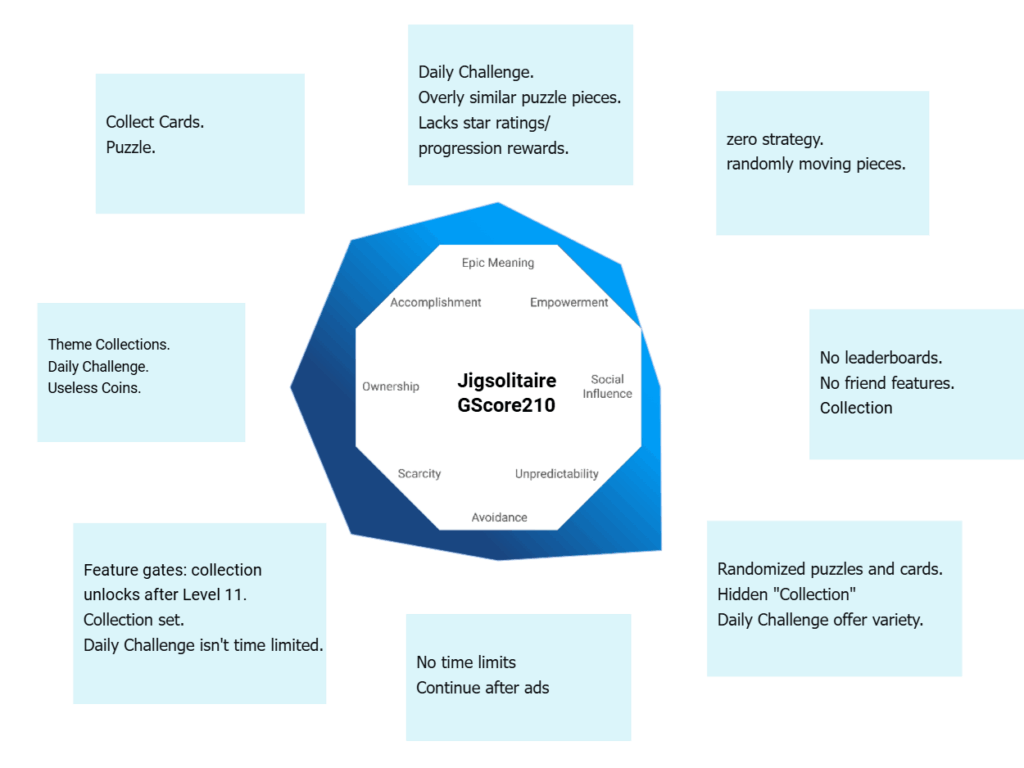 Here’s 09GameReview’s evaluation of Jigsolitaire across the 8 Core Drives, based on actual gameplay.