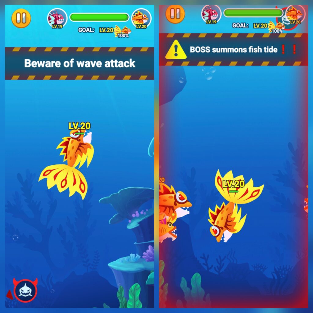 The game gives players a simple yet clear goal: grow from a tiny fish (Guppy) into a legendary giant and dominate the ocean. While the story isn’t complex, the very concept of “evolution” is inherently appealing. Watching your fish grow from Lv.10 to Lv.20 and then challenging bosses creates the most direct epic of conquering the sea, step by step.