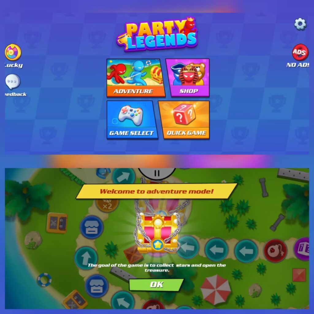 For a pure party game, it doesn’t need a world-saving plot. In “ADVENTURE” mode, the game gives a simple directive: “The goal is to collect stars and open chests.” This isn’t a flaw, but precise targeting. For a game aiming to get players up to speed and directly competing within minutes, complex lore is counterproductive. Its “mission” is simple: beat the friends sitting next to you.