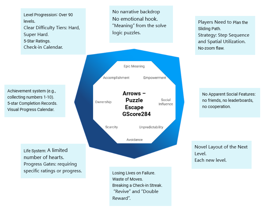 Below is a detailed evaluation of Arrows – Puzzle Escape across the eight core drives.